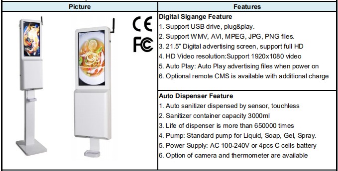 No Touch Electric 35W Lcd Advertising Player Hand Sanitizer Dispenser Images |
